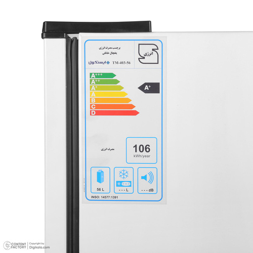 ارتفاع 59، عمق 53 و پهنای 45 سانتی متر، میزان مصرف انرژی A+، دارای 2 طبقه، دارای سیستم دیفراست